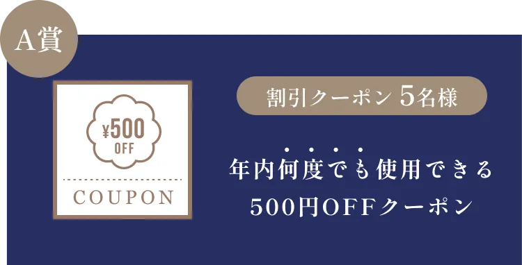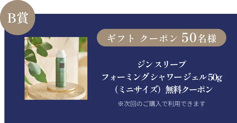 - B賞のクーポン券は次回公式オンラインストアでの購入時にご利用いただけます。