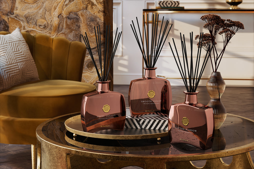 心地よいムードをお部屋に演出する、プライベート コレクションのフレグランス スティック。洗練されたデザインも魅力のアイテムです。コットンブロッサムのフレグランス スティックは、ソフトな香りの中にエネルギーと爽やかさを感じさせます。ベルベットを思わせる甘いマンダリンと、ジャスミン、チュベローズ、バイオレットなどの繊細なフローラルの香りに、サンダルウッドとバルサミコの心地よいベースノートが重なります。シャンパンカラーのガラスジャーは、メタリックなセミトランスペアレント仕上げ。どんなインテリアにも合わせやすく、ご自宅の空間のアクセントとして、または大切な方へのプレゼントにもおすすめです。