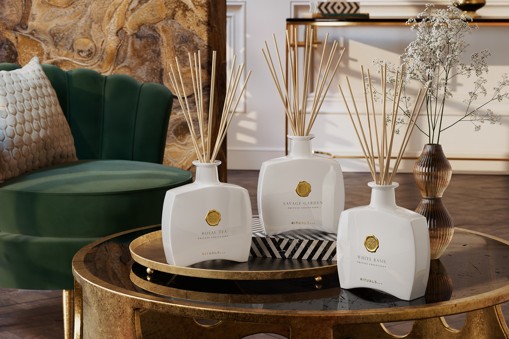 ラグジュアリーなロイヤル ティー フレグランス スティックは、グリーンティーとバンブーリーブスにハーブのニュアンスが織りなす、グリーンに満ちた静かなオアシスへと五感を導くような香りです。自然由来成分90%以上配合。