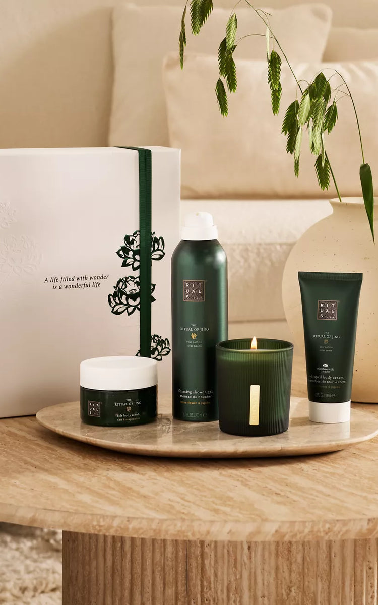 香りで心地よい眠りを届ける、リチュアル オブ ジンのギフトセット。心を穏やかに整える香りのアイテムがセットになっています。