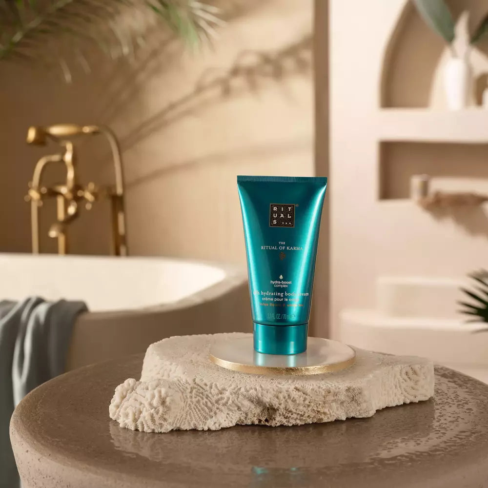 肌がうるおうリチュアル オブ カーマ コレクション。ハイドラブーストコンプレックス(保湿効果のある成分、スクワラン・アロエベラ*1 ・藻類*2の複合体)を配合。肌タイプを問わず、毎日お使いいただけます。ホワイトティーとロータスフラワーの爽やかで夏らしい香りをお楽しみいただけるシリーズです。