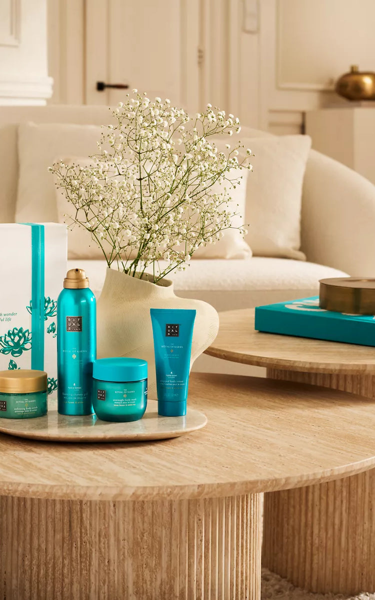 ロータスフラワーとホワイトティーの香りが気分を高め、夏のムードを感じさせるリチュアル オブ カーマのラグジュアリーなギフトセット。自分へのご褒美や大切な方への贈り物におすすめです。