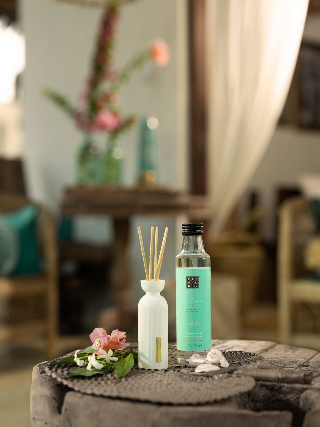 環境に優しいポジティブな日々を提案する、フレグランス スティックのリフィル。ガラス製のボトルに、人気の高いロータスフラワーとホワイトティーのフレグランスが収められています。リフィルには新しいスティックをご使用ください。香りは約3カ月持続します。